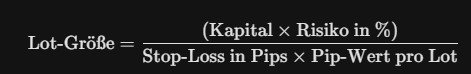 Wichtig: Der Stop-Loss ist fix durch die Marktanalyse bestimmt. Du passt die Lot-Größe an, um Dein Risiko konstant zu halten, nicht den Stop-Loss!