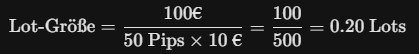 2.2 Formel zur Berechnung der Lot-Größe (Positionsgröße)